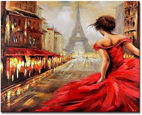 YUUWO Paris Turm Roten Rock Mädchen DIY Malen Nach Zahlen Zeichnen Streben Nach Romantik Ölbilder Kits Färbung Auf Leinwand Wohnkultur Rahmenlos 40x50cm: Amazon.de: Küche & Haushalt
